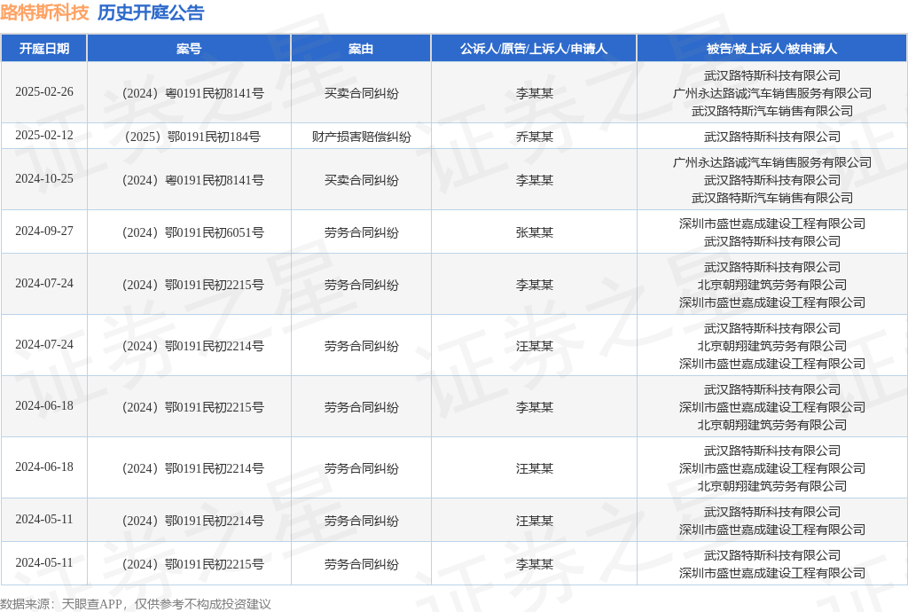 本站消息,根据天眼查APP显示,近日公布了一则武汉路特斯科技有限公司作为被告/被上诉人的开庭公告,详细内容如下: